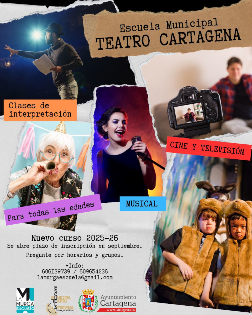 La Escuela Municipal de Teatro de Cartagena, que cumple 29 años este curso, está dirigida por La Murga Teatro, Compañía profesional Cartagenera, que el mes de febrero próximo cumplirá 44 años de trayectoria, siendo la Compañía teatral decana de la región de Murcia, y una de las más antiguas a nivel nacional.