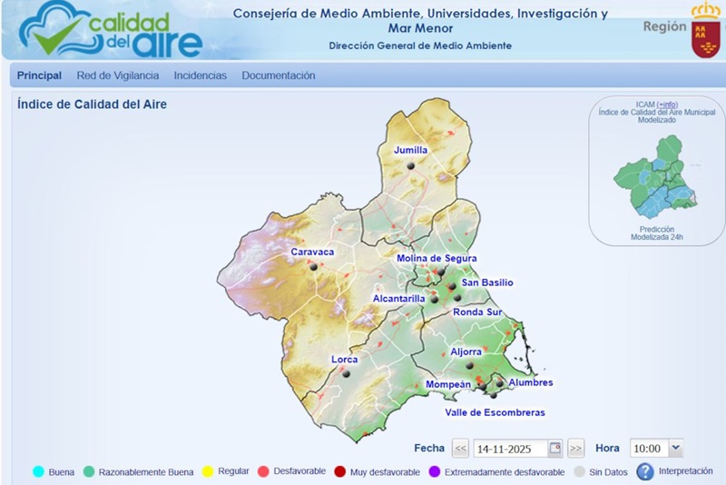 La Dirección General de Medio Ambiente de la Comunidad Autónoma de Murcia ha informado al Ayuntamiento de Cartagena de que en la jornada de este jueves 13 de noviembre se registró el Nivel 1 (Preventivo) para las partículas PM10 en las estaciones de medida de Mompean, La Aljorra y Alumbres, y Nivel 3 (Alerta) en la estación de medida de Valle de Escombreras. Y que este viernes 14 se ha registrado el Nivel 3 de Alerta en todas ellas, afectando así a todo el municipio.
