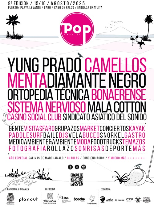 La séptima edición de Cabo de Pop calienta motores y reunirá el 15 y 16 de agosto en este rincón de la costa cartagenera a lo mejor de la escena indie underground nacional, consolidando al festival, organizado por PlanOut y el Ayuntamiento de Cartagena, en una cita indiscutible dentro del calendario estival. Y lo es, no sólo por su cuidada selección de artistas y su apuesta por grupos emergentes y talento regional, sino por aunar como nadie música, ocio, deporte y sostenibilidad, convirtiéndose en un escaparate inmejorable de la Región de Murcia, como destino diverso y sostenible de naturaleza, patrimonio, arte y cultura, más allá del modelo de sol y playa.