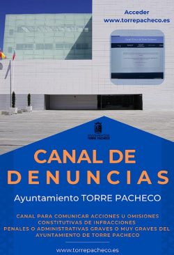 El Ayuntamiento de Torre Pacheco dispone de un canal de denuncias dirigido a las personas físicas que hayan obtenido información sobre: