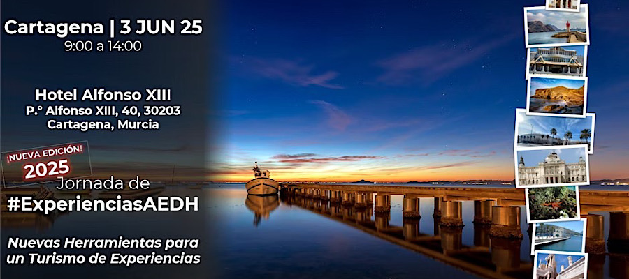 El próximo 3 de junio, Cartagena acogerá uno de los eventos más innovadores del sector turístico nacional: la jornada ‘Nuevas herramientas para un Turismo de Experiencias’, organizada por la Asociación Española de Directores de Hotel (AEDH). La cita tendrá lugar en el reconocido Hotel Sercotel Alfonso XIII, punto de encuentro de directores de hotel, expertos del sector, empresarios turísticos y profesionales de la Región de Murcia.