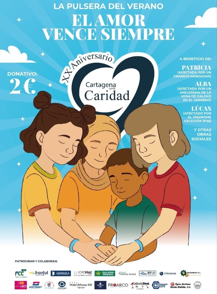 La asociación benéfica Cartagena por la Caridad presentará ‘La pulsera del verano’, una iniciativa destinada a recaudar fondos para tres niños que padecen enfermedades raras, así como para otras obras sociales. Será mañana miércoles 25 de junio, a las 19:00 horas, en La Económica, sita en la calle del Aire nº26.