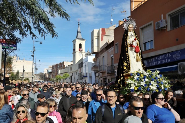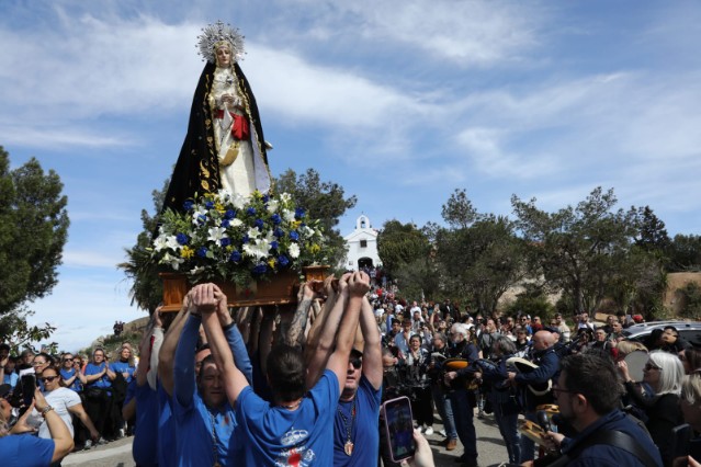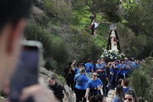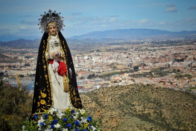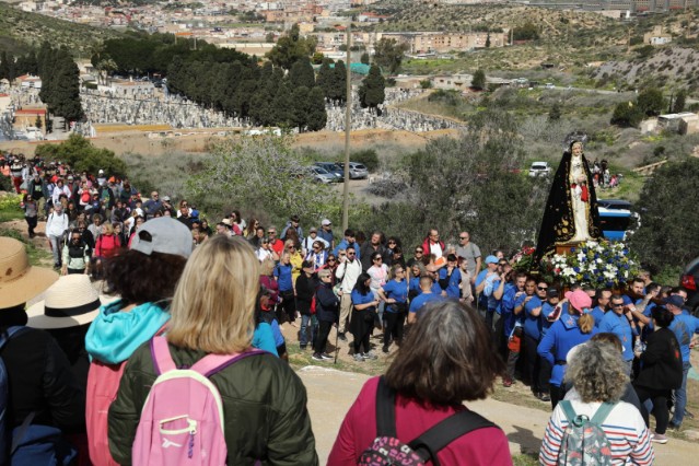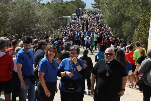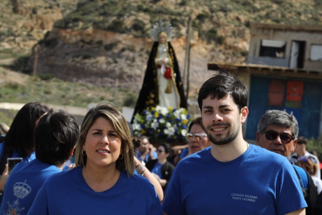 Cartagena sigue a la Virgen de la Soledad en la romería la ermita del Calvario. Del barrio de Santa Lucía han partido centenares de fieles este domingo, 23 de marzo, para subir al monte. Entre ellos se encontraba la alcaldesa Noelia Arroyo y el concejal delegado de Cultura, Ignacio Jáudenes.