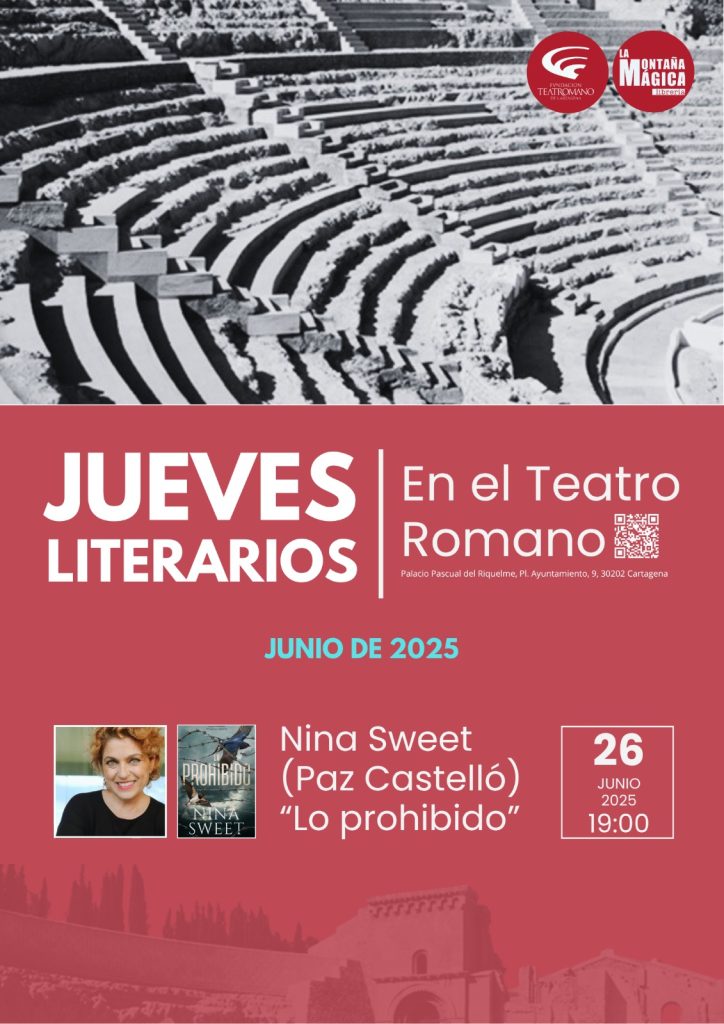 La escritora alicantina Paz Castelló es la encargada de clausurar esta primera temporada de los Jueves Literarios en el Teatro Romano, con la presentación de su novela “Lo prohibido”, que firma bajo el seudónimo de Nina Sweet.