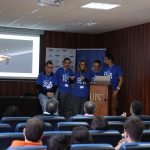 El equipo formado por Miguel López Munuera, Carlos Jair Mero Coello, Manuel Lage Martínez, José Antonio Zafra Torres y Juan Antonio González Fiérrez ha ganado el primer Hackathon ‘Navantia Next Pioneers’, celebrado en la Escuela de Navales de la UPCT, con una solución basada en la encriptación de mensajes acústicos para guiar a un dron autónomo hacia un submarino y el uso de bobinas electromagnéticas para recogerlo e integrarlo en el casco a través de una compuerta retráctil.