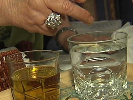 “ponía un vaso con agua y tenía paños de lana rojo, amarillo, negro y blanco, se ponía a cortarlos de todos los colores. Sacaba tiricas chiquitinas como granicos de arroz que caían en el agua y arreglado al color que cayera al fondo pertenecía la calidad del aliacán”; conforme caían la curandera rezaba una oración.