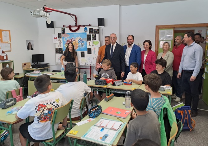 El CEIP Petra Sánchez Rollán de Los Alcázares ya dispone de cuatro nuevas aulas tras la finalización de las obras de ampliación del centro. El consejero de Educación y Formación Profesional, acompañado del alcalde de Los Alcázares, Mario Pérez, y del director del centro, Juan Francisco Tomás, inauguró hoy este nuevo espacio anexo al colegio.