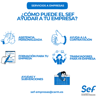 Para proporcionar todos estos servicios, el SEF cuenta con un equipo técnico especializado que se encarga de atender las peticiones concretas de cada empresa como, por ejemplo, la gestión de procesos de selección, asesoramiento sobre contratos y ayudas y subvenciones de apoyo a la misma, así como para la formación de sus trabajadores.