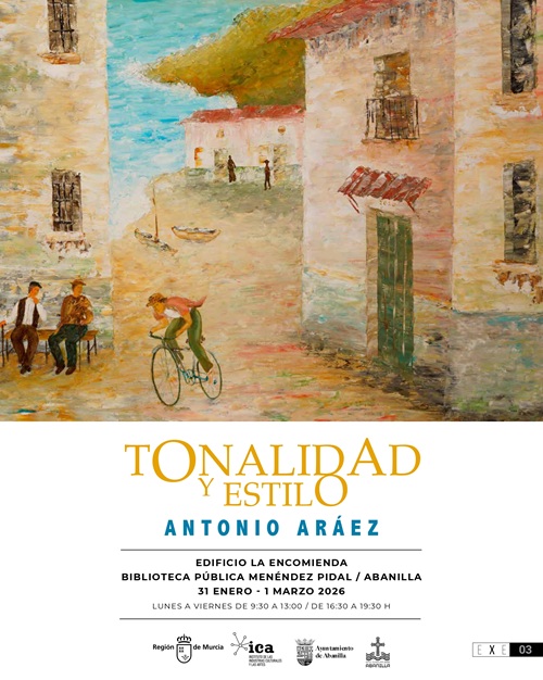 Por su parte, el Ayuntamiento de Abanilla ha seleccionado del catálogo del Plan EXE el proyecto ‘Tonalidad y estilo’, de Antonio Aráez, para la sala de exposiciones de la biblioteca pública Menéndez Pidal. La muestra reúne una serie de óleos trabajados con pincel y espátula, en los que Aráez despliega un estilo personal caracterizado por la riqueza cromática, la luminosidad y la presencia recurrente del agua como símbolo de vida.