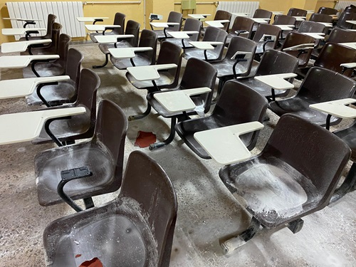 “La situación del centro es lamentable. El salón de actos, por poner un ejemplo, está completamente destrozado, con goteras, techos desconchados y sillas rotas, entre otros desperfectos. Un absoluto despropósito”, denuncia la concejala socialista Isabel Andreu.