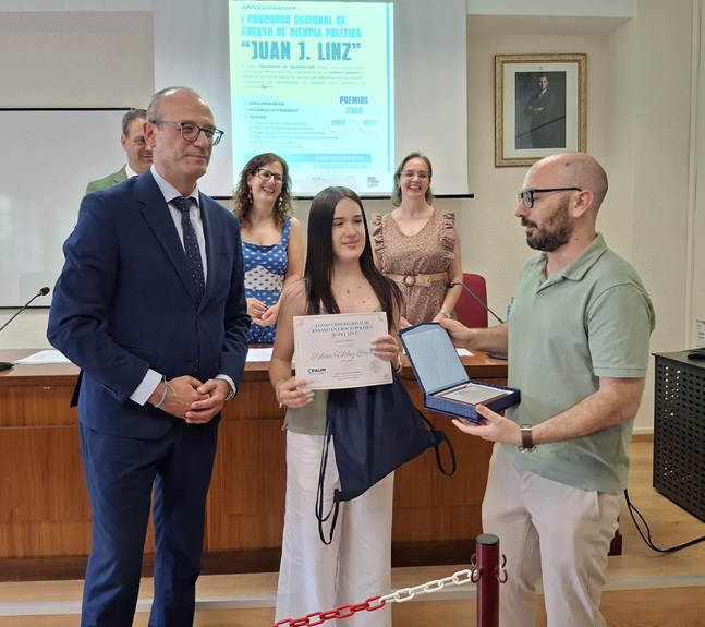 Entregados los premios del I Concurso regional de ensayos en Ciencia Política para alumnos de Bachillerato ‘Juan J. Linz’, que organiza la Cátedra de Políticas Públicas de la Universidad de Murcia para estudiantes de primero o segundo de Bachillerato en la Región.