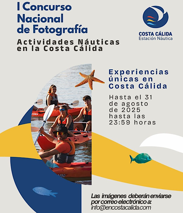 Estación Náutica Costa Cálida (ENCC), con el respaldo del Instituto de Turismo de la Región de Murcia (ITREM), lanza el I Certamen Nacional de Fotografía “Actividades Náuticas en la Costa Cálida”, una iniciativa abierta a profesionales y aficionados a la fotografía que deseen captar y difundir la riqueza natural y deportiva del litoral murciano.