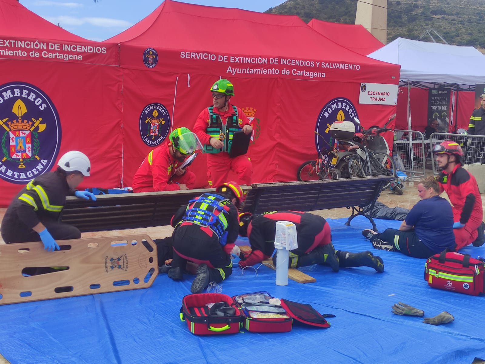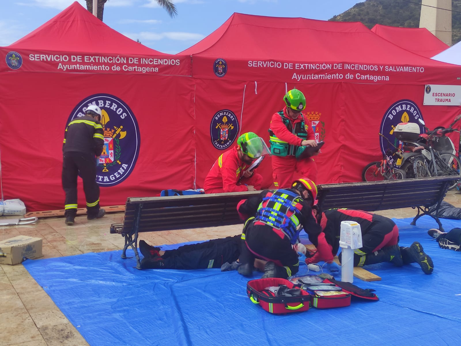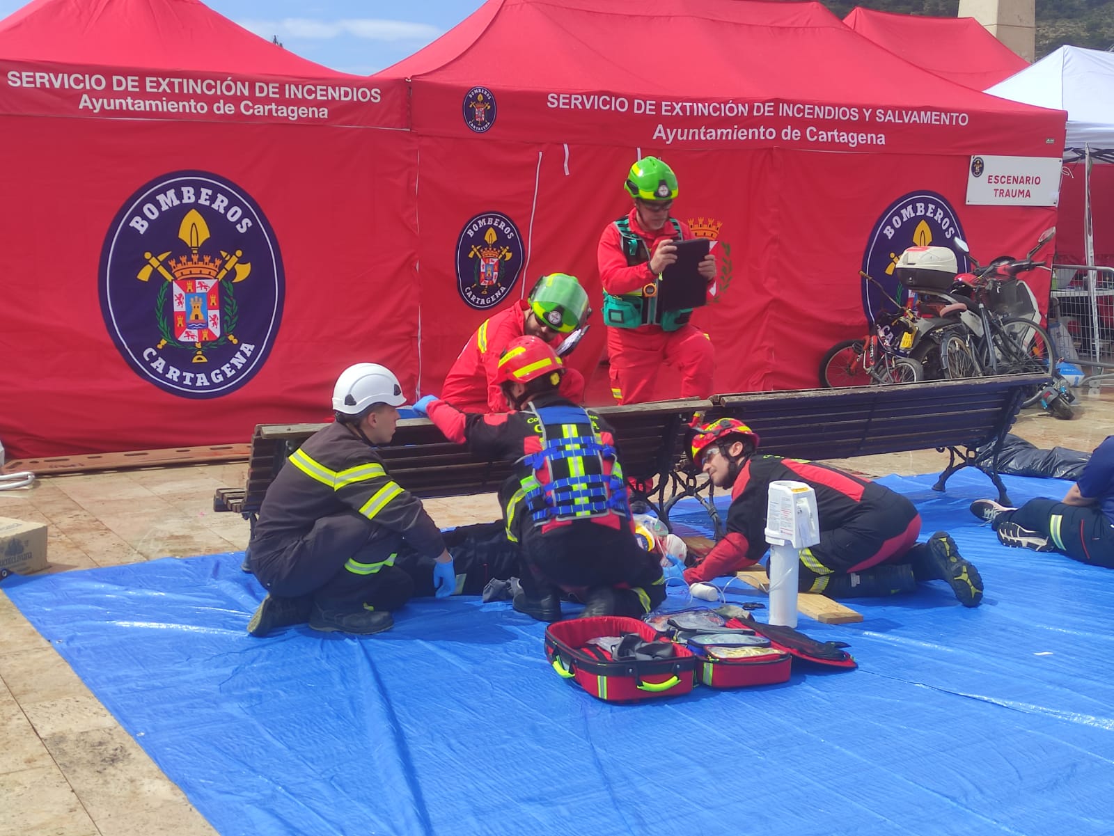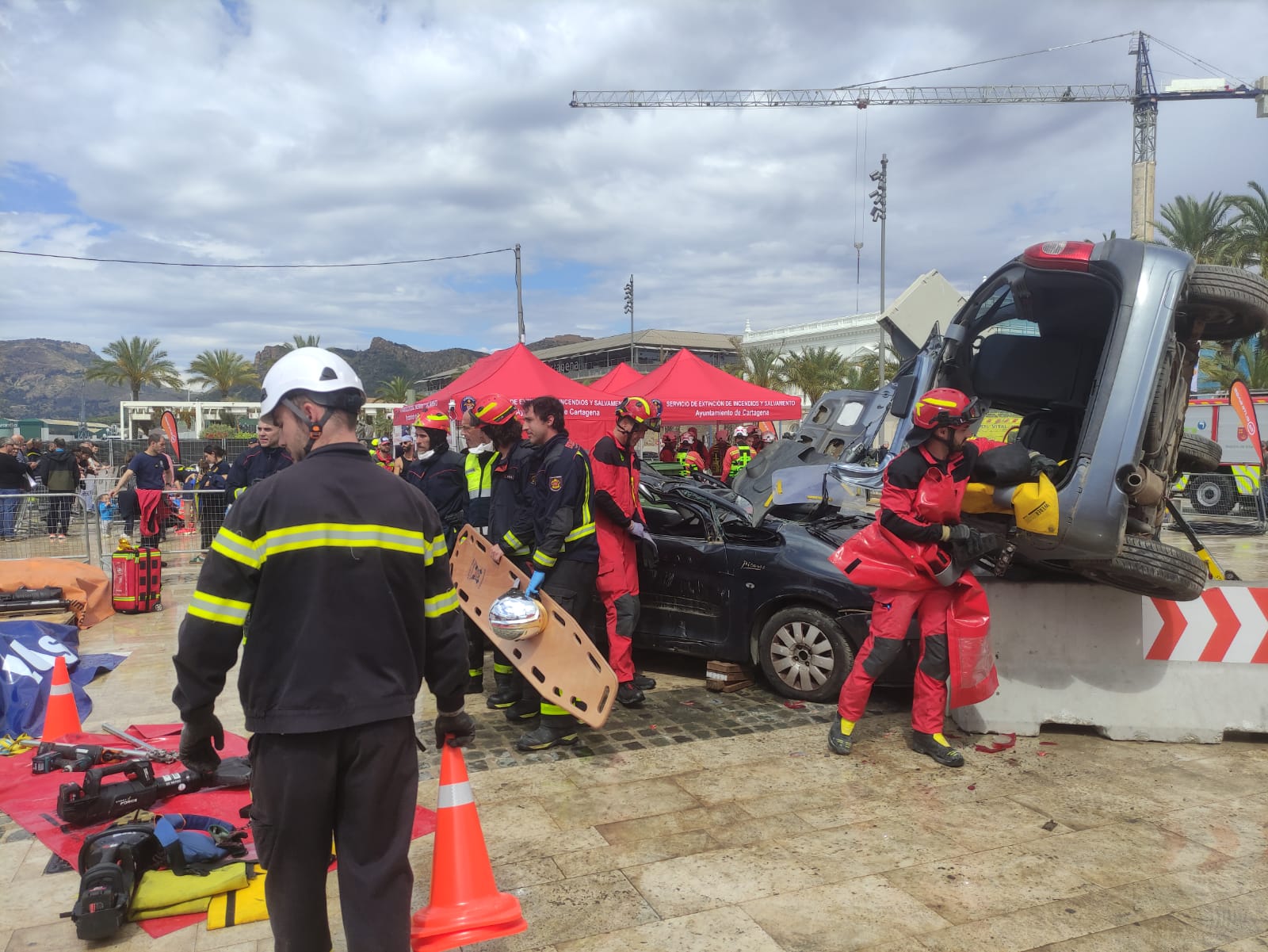 Cartagena concluye este 16 de mayo la jornada técnica para profesionales sobre intervención en siniestros de tráfico, que congrega en la ciudad a más de 200 bomberos y sanitarios de toda España. En el puerto se muestran los diferentes ejercicios y exhibiciones de rescates y atención a heridos. Unas actividades que son abiertas al público en la explanada del puerto, junto a la plaza Héroes de Cavite y Santiago de Cuba.