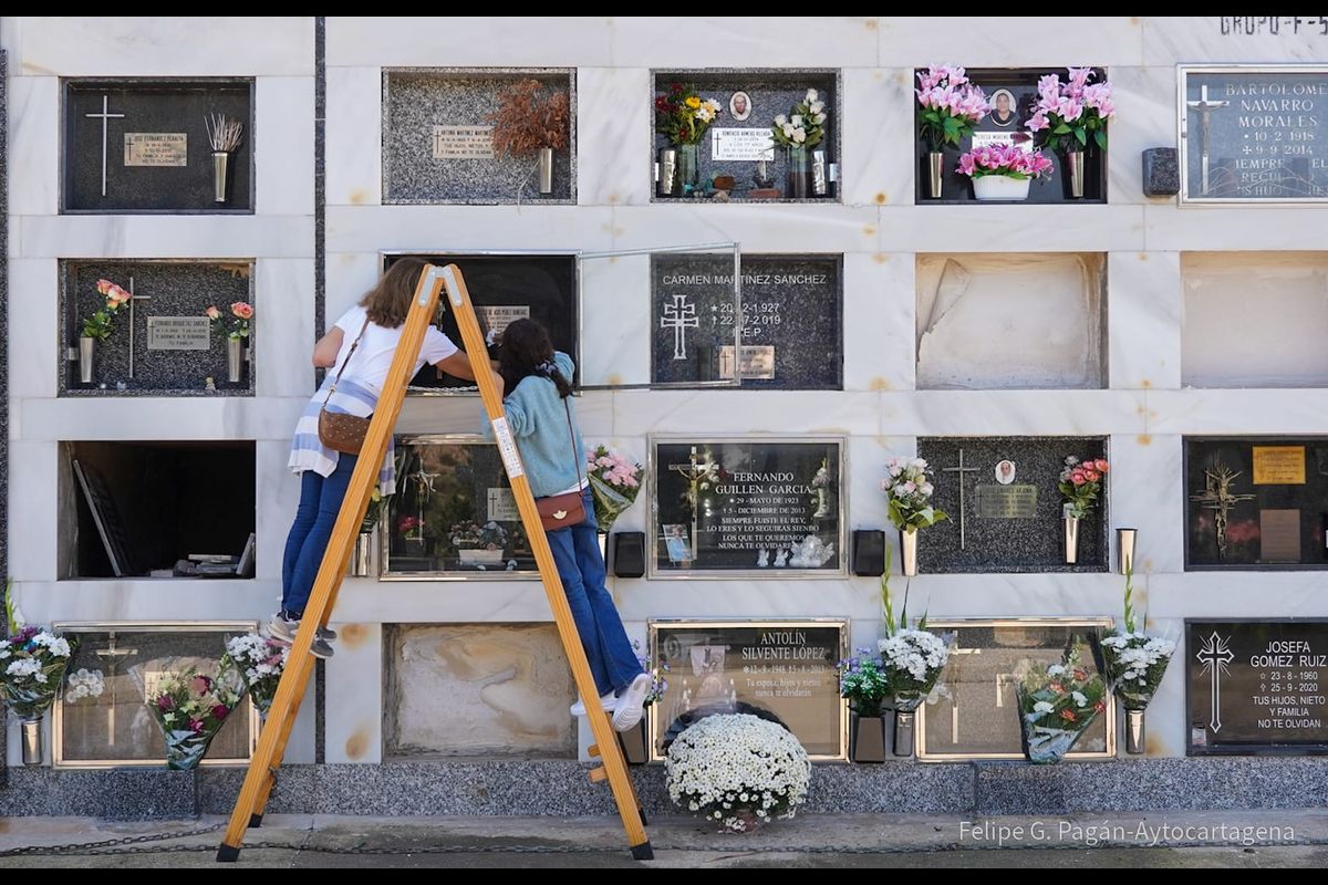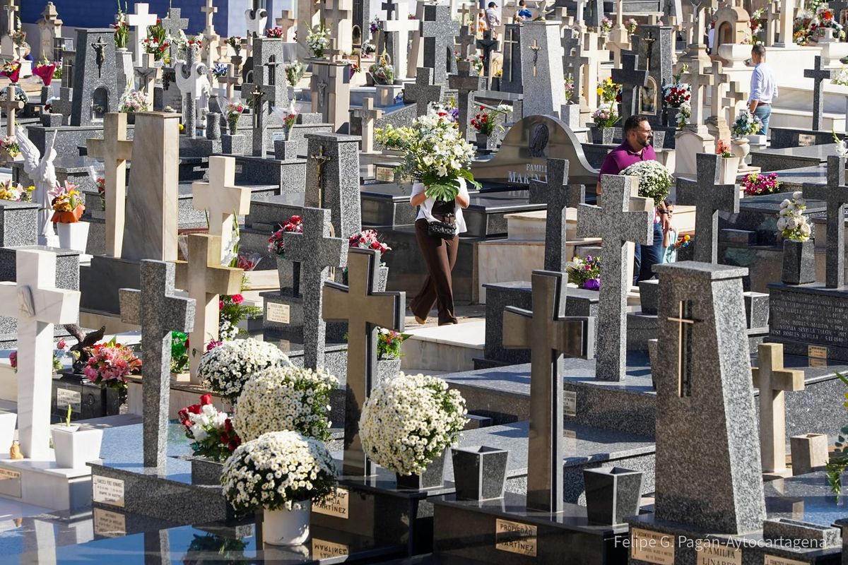 Los cartageneros honran este sábado 1 de noviembre, Día de Todos los Santos, a sus difuntos visitando los cementerios en los que reposan, donde les recuerdan con flores y oraciones.
