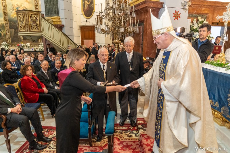 En su intervención, la alcaldesa ha dedicado unas palabras especialmente sentidas al Padre Montesinos, figura muy querida en la ciudad, que ofreció décadas de servicio desde la parroquia de San Diego, como rector de La Caridad y creador de múltiples iniciativas sociales. Su labor tiene el reconocimiento de toda Cartagena como un ejemplo de servicio, entrega y compasión hacia los más desfavorecidos. “recorrió el camino de la caridad, puso panes y peces en las manos de los más necesitados, buscó y dio protección a los más desamparados. Quienes tuvimos la suerte de conocerlo seguiremos viéndole siempre cada vez que miremos hacia este altar. Lo veremos justo donde está: junto a la Madre a la que sirvió con ilusión y generosidad.”, ha dicho Arroyo.