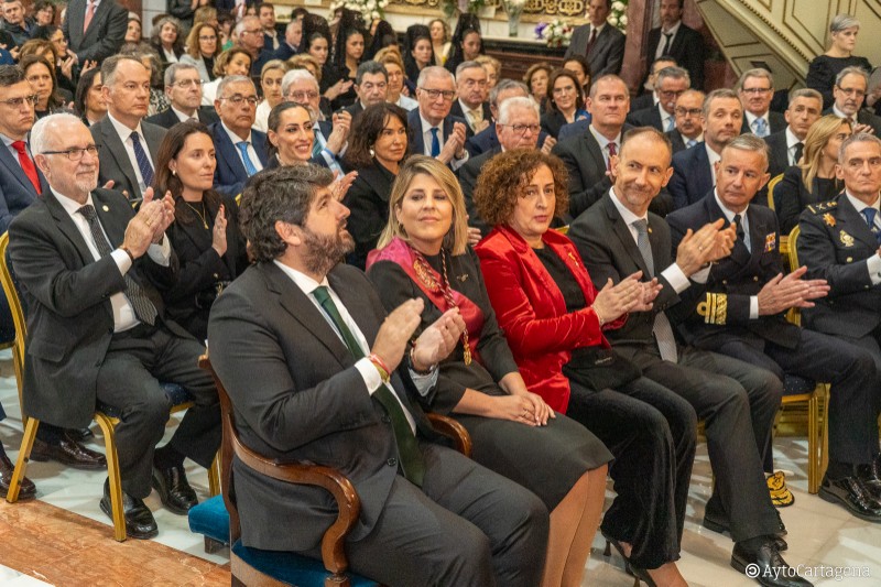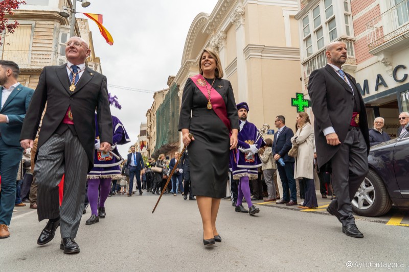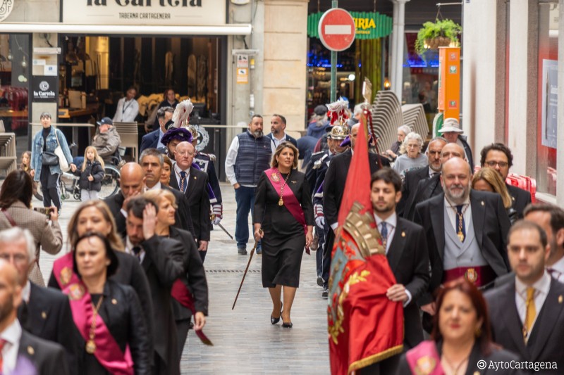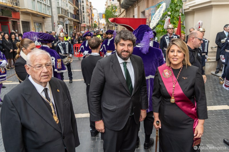 Noelia Arroyo ha comenzado la ofrenda destacando que es Cartagena la ciudad que inicia las procesiones: “La Semana Santa de España ha amanecido hoy por Cartagena”. Lo ha hecho ante el presidente de la Comunidad Autónoma, Fernando López Miras; el obispo de la Diócesis de Cartagena, José Manuel Lorca Planes; la presidenta de la Asamblea, Visitación Martínez, el Almirante de Acción Marítima, Victoriano Gilabert, y el Retor de la UPCT, Mathieu Kessler, entre otras autoridades civiles y militares.