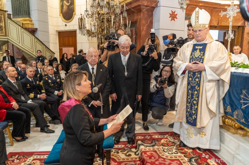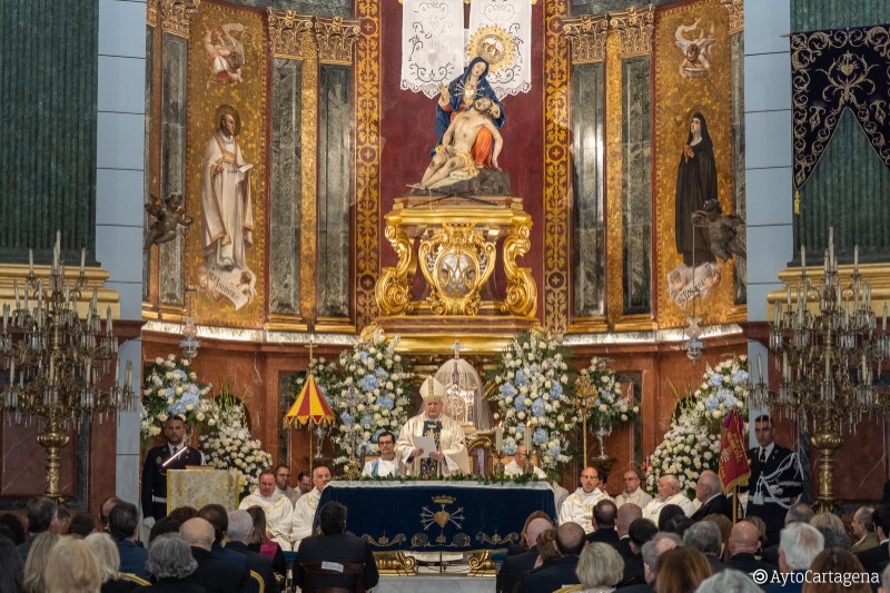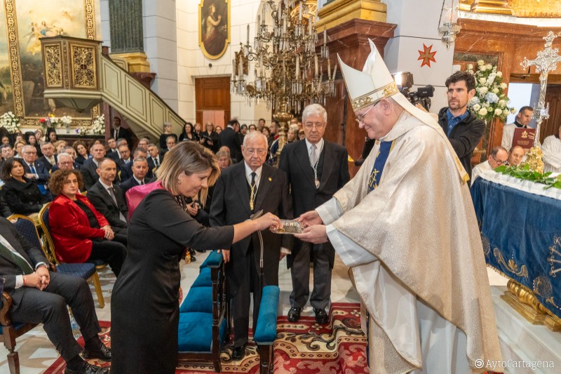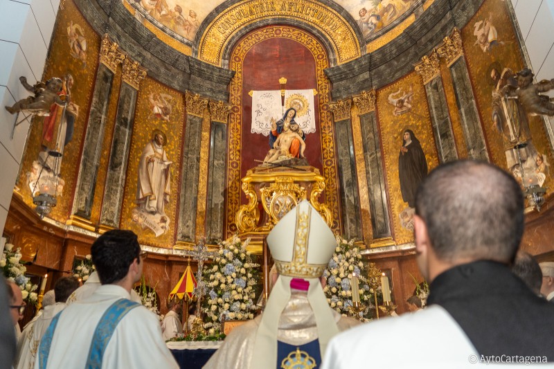 En su intervención, la alcaldesa ha dedicado unas palabras especialmente sentidas al Padre Montesinos, figura muy querida en la ciudad, que ofreció décadas de servicio desde la parroquia de San Diego, como rector de La Caridad y creador de múltiples iniciativas sociales. Su labor tiene el reconocimiento de toda Cartagena como un ejemplo de servicio, entrega y compasión hacia los más desfavorecidos. “recorrió el camino de la caridad, puso panes y peces en las manos de los más necesitados, buscó y dio protección a los más desamparados. Quienes tuvimos la suerte de conocerlo seguiremos viéndole siempre cada vez que miremos hacia este altar. Lo veremos justo donde está: junto a la Madre a la que sirvió con ilusión y generosidad.”, ha dicho Arroyo.