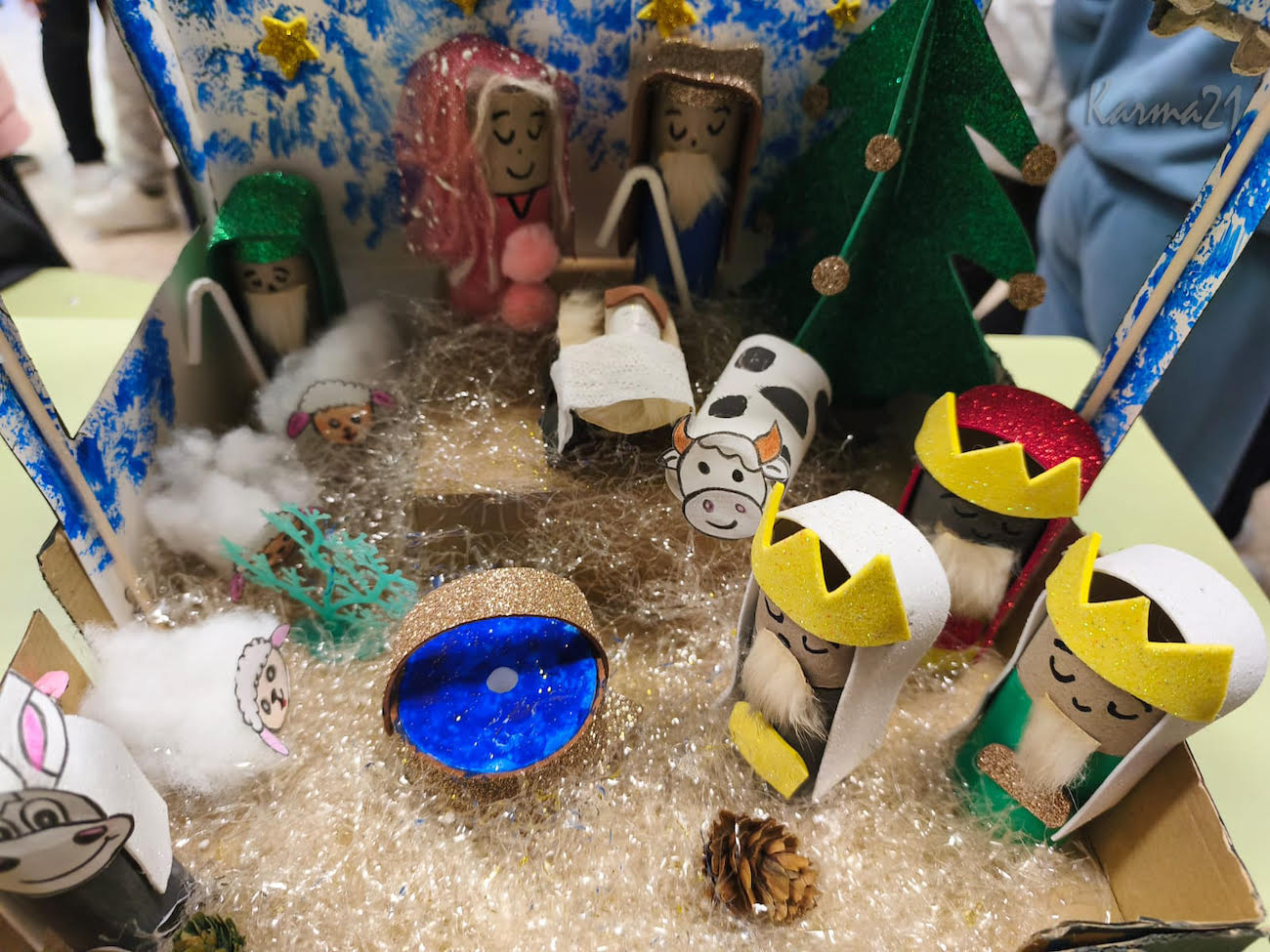 Brenda Vanessa, alumna de Primaria del colegio Salesianos de Barriada de Hispanoamérica-Los Dolores, ha sido la ganadora de la sección dirigida a los escolares del ‘IX Concurso de belenes de Cartagena Norte’ con un nacimiento cuyas figuras están elaboradas con canutos de rollos de papel higiénico.
