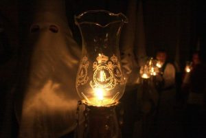 Simboliza la oscuridad en la que se sumió el mundo al morir Cristo en la Cruz, la oscuridad de la muerte, el final de la vida y un pequeño halo de esperanza en que se cumplan las profecías y llegue la Resurrección del Hijo de Dios, quien ha tenido que morir para que los pecados de los mortales fuesen purgados.