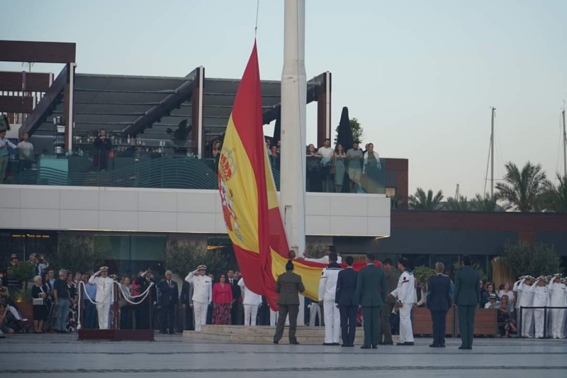 El día 10 de octubre, al ocaso (19:33 horas), en la Plaza Mayor del puerto de Cartagena se celebrará un Solemne Arriado de Bandera. El acto contará con la participación de una Compañía de Honores Mixta formada por secciones del Ejército de Tierra, Armada, Ejército del Aire y del Espacio y de la Guardia Civil, Unidad de Música y escuadra de gastadores del Tercio de Levante, así como la Batería de Salvas del Regimiento de Artillería Antiaérea núm. 73 del Ejército de Tierra y un destacamento mixto portabandera.