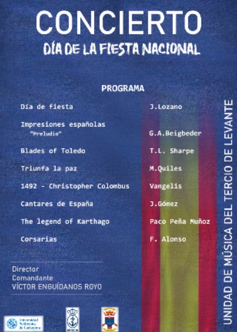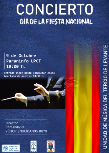 A partir de las 19.00 horas, la Unidad de Música del Tercio de Levante de la Infantería de Marina, ofrecerá un concierto conmemorativo en el Paraninfo de la Universidad Politécnica de Cartagena. La entrada será libre hasta completar aforo.