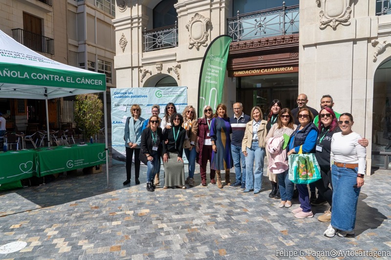 El equipo de Misión de la Asociación Española Contra el Cáncer en la Región ha llevado a cabo en la plaza del Icue el acto ‘Todavía sigo aquí. La realidad de los cuidados paliativos’ al que se ha sumado la concejal del área de Política Social, Familia e Igualdad, Cristina Mora.