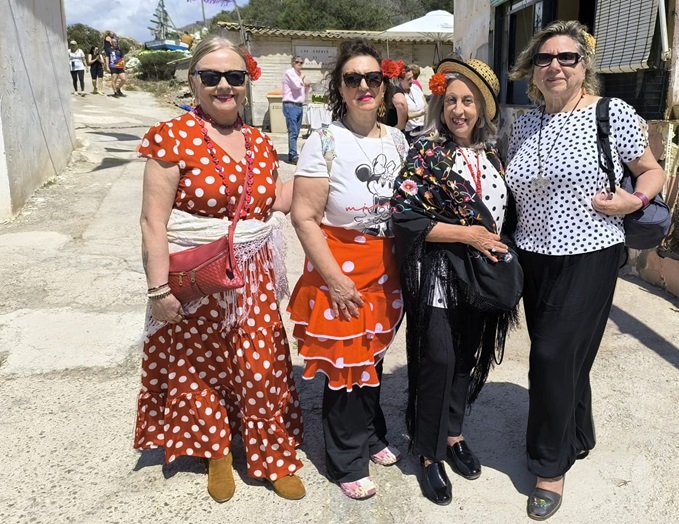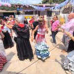 Fue entonces cuando la DJ Rocío Galinda comenzó a pinchar música flamenca, rociera y, también, canciones de pop que hicieron las delicias de todos los asistentes poniéndolos a bailar y cantar con sus vestimentas coloridas de faralaes. Al medio día se celebró un concurso de sevillanas ganado por Ana Ronda y, posteriormente, actuó el grupo flamenco ‘La Misma Suegra’ que levantó grandes aplausos.