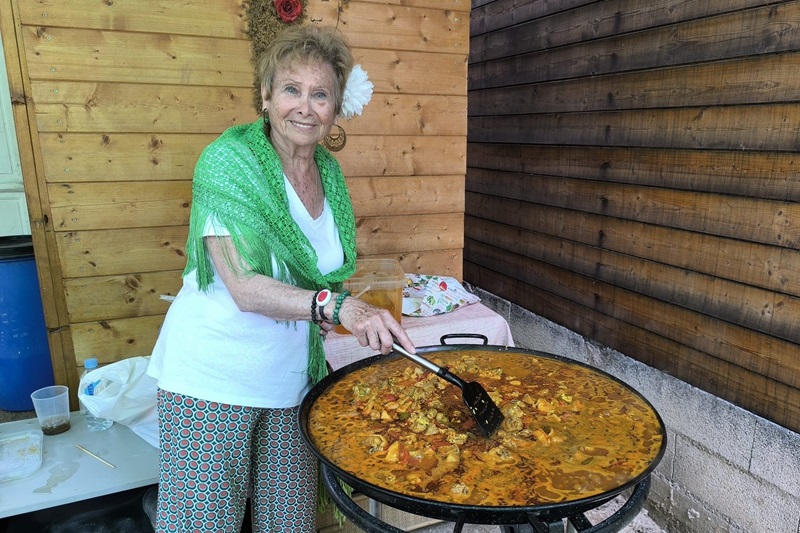 A las dos de la tarde se sirvieron dos paellas ‘algamequeras’ junto con la bebida. Igualmente, hubo café de olla. Asimismo, durante todo el día hubo un servicio de cantina con tapas de patatas fritas con aceitunas, refrescos, cerveza, agua y rebujitos y, también, un puesto con productos artesanales de La Algameca Chica. Al terminar la comida se celebró un bingo. Por último, la jornada finalizó con una degustación de chocolate y bizcocho.