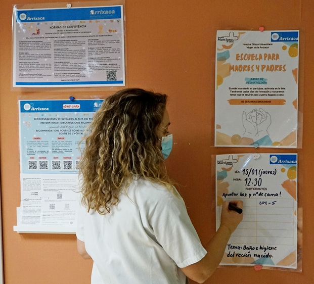 La Unidad de Neonatos del Hospital Infantil de la Arrixaca ha puesto en marcha una escuela de madres, padres y personas cuidadoras para acompañar a las familias tras el alta de sus bebés.