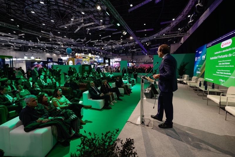El acto ha tenido lugar en el pabellón 12, dentro del foro FiturtechY · techYsostenibilidad. El galardón, otorgado por Veolia, reconoce a la Autoridad Portuaria de Cartagena como institución modelo de gestión sostenible y crecimiento en el ámbito turístico.