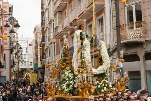 El rigor, la sencillez y la belleza de sus imágenes, son la seña de identidad de este cortejo del que forman parte tres imágenes portadas a hombros, San Juan, la Virgen de los Desamparados y el Cristo de la Misericordia.