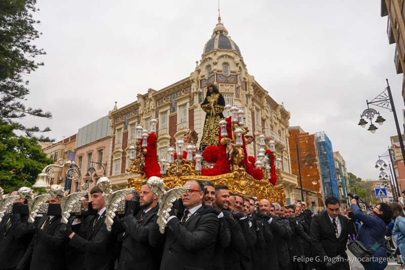 Tras la Ofrenda Floral a la Caridad y antes de la primera procesión california, las calles del centro de Cartagena vivieron este Viernes de Dolores, 11 de abril, el Vía Crucis del Cristo de la Divina Misericordia, a cargo de la Cofradía recientemente nombrada por el Obispado.