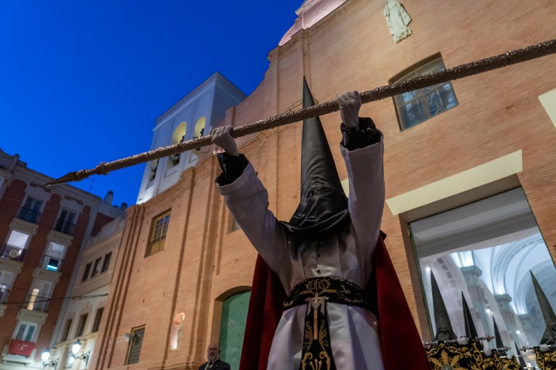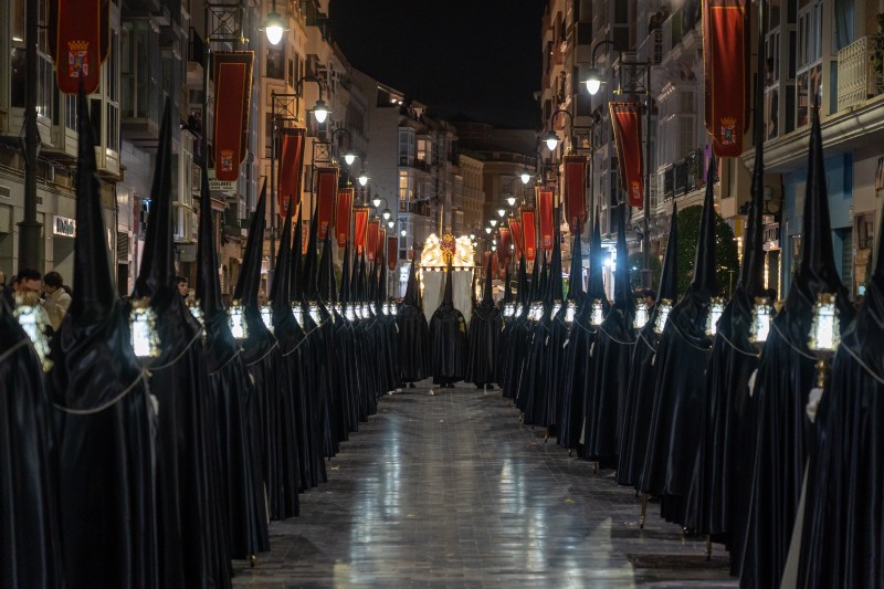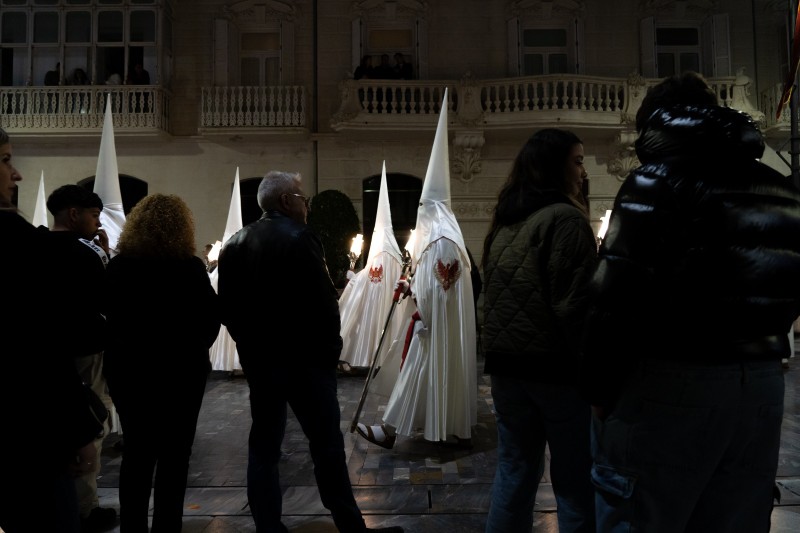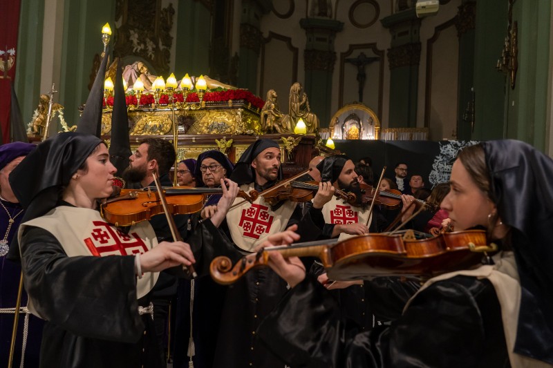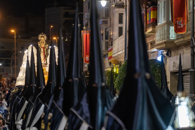 El desfile, organizado por la Cofradía Marraja, partió desde la iglesia de Santa María de Gracia y avanzó por las principales calles del centro, envuelto en un ambiente de luto y respeto que evocaba la muerte de Cristo. También asistió el obispo de la Diócesis de Cartagena, José Manuel Lorca, reforzando el carácter religioso de la procesión.