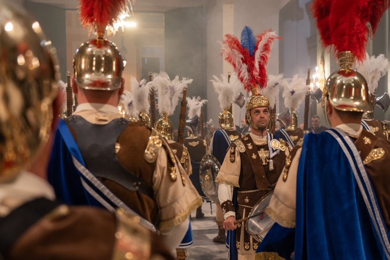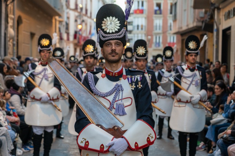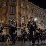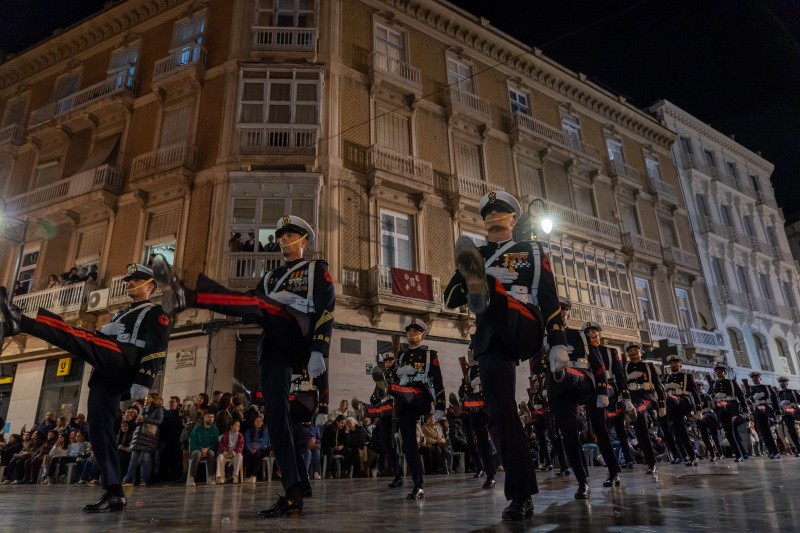El cierre del cortejo volvió a dejar una de las imágenes más impactantes de la noche, con el piquete del Tercio de Levante de Infantería de Marina, cuya precisión y elegancia en el desfile despertaron la admiración del público congregado a lo largo del recorrido.