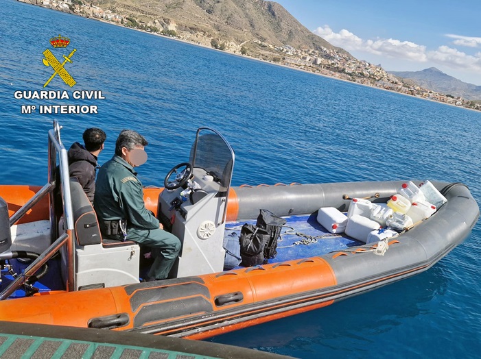 Al llegar a la zona, los guardias civiles vieron como la lancha se encontraba al pairo, cerca de unas rocas, con un único tripulante que parecía ajeno a la presencia policial.