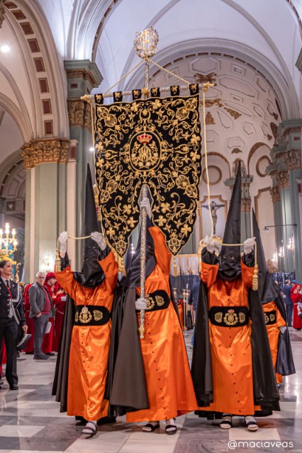 Al anochecer de este Viernes de Dolores, día dedicado a la patrona de Cartagena, la procesión del Santísimo Cristo de la Misericordia y María Santísima del Rosario, la más joven de la Cofradía California, recorrió el centro urbano para clausurar la primera jornada de la Semana Santa.