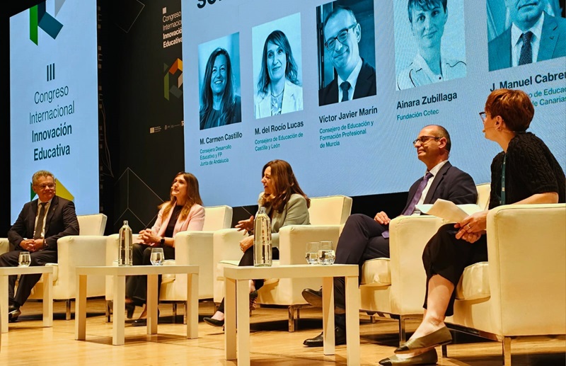 La Estrategia de Digitalización Educativa ‘Libre’ de la Región de Murcia se presentó hoy en el III Congreso Internacional de Innovación Educativa de Andalucía, organizado en Granada por la Junta, donde participó el consejero de Educación y Formación Profesional, Víctor Marín, en la mesa redonda ‘Retos de siempre, soluciones nuevas’, junto a sus homólogos de Andalucía, Castilla y León y Canarias.