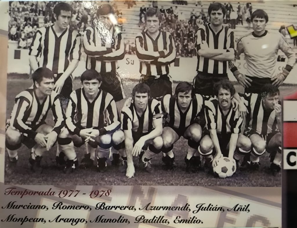 También una fotografía y un panel explicativo del gran aficionado que fue ‘El Abute’, un ex–legionario que iba al estadio de El Almarjal acompañado de un perrito uniformado de albinegro.