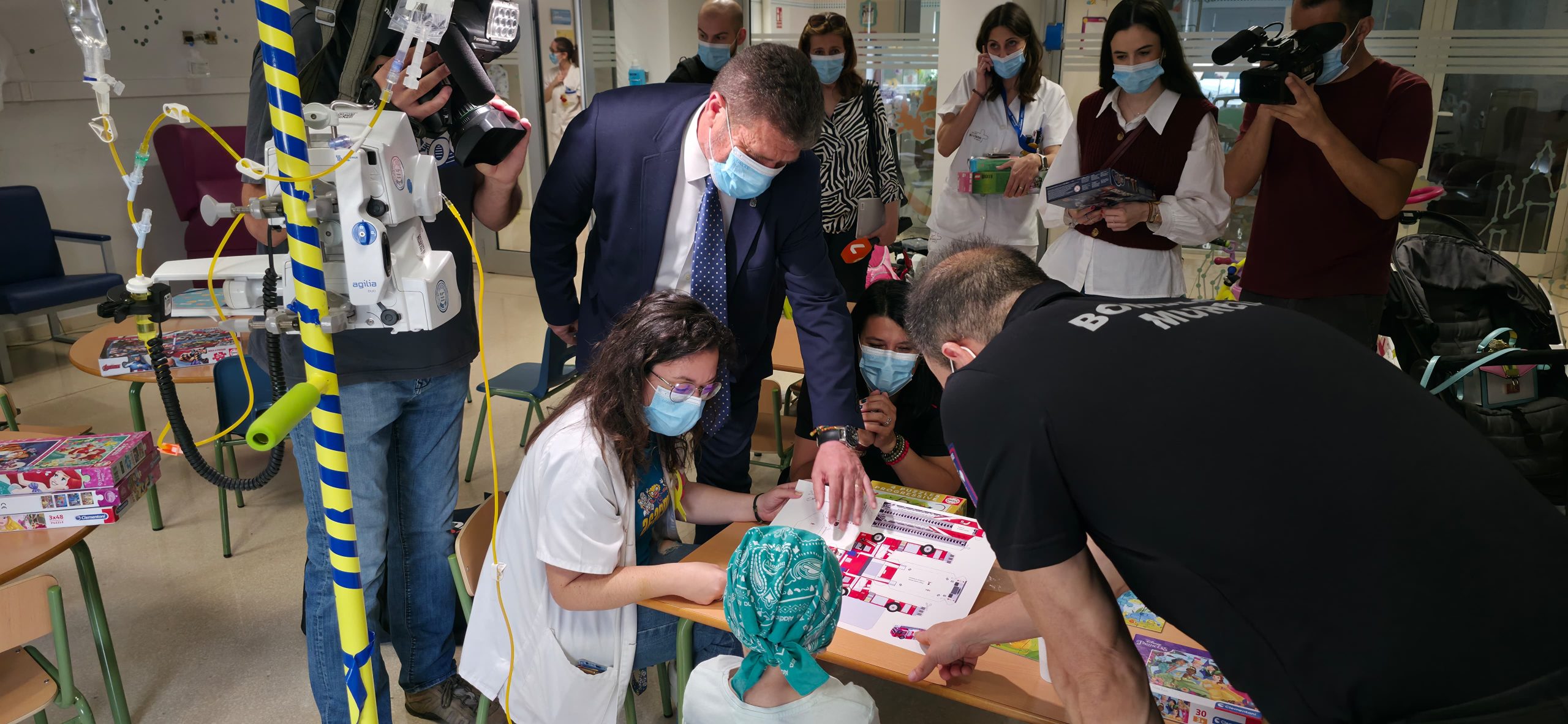 El Hospital Materno Infantil Virgen de la Arrixaca ha recibido esta mañana la visita del concejal de Seguridad Ciudadana y Emergencias, Fulgencio Perona, acompañado por varios miembros uniformados del cuerpo de bomberos, con motivo de una entrega de juguetes organizada en colaboración con la Fundación Pequeño Deseo de la Ambulancia del Deseo, una ong que ayuda a realizar el último deseo de los pacientes con un largo tiempo de encamamiento, una enfermedad importante o enfermedad incurable.