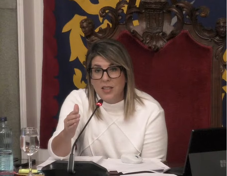 Noelia Arroyo le aclara al ministro de transportes Óscar Puente que la grúa que ha chocado con el tren FEVE no pertenece al Ayuntamiento de Cartagena