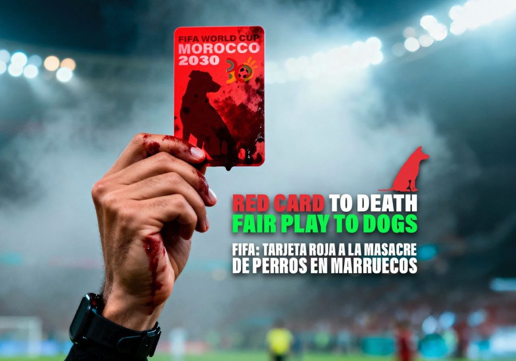 La campaña, que recibe por nombre «FIFA: tarjeta roja a la masacre de perros en Marruecos» o «Red card to death, fair play to dogs» en su traducción al inglés, implica al Gobierno de España, al marroquí, a la FIFA, e incluso a la Real Federación Española de Fútbol.