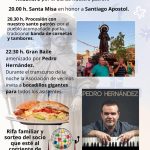 A las 20:00 horas se procederá a la celebración de la Santa Misa en honor a Santiago Apóstol. A continuación, se dará paso a la tradicional procesión con la imagen del patrón por los caminos del pueblo acompañada por la banda de cornetas y tambores ‘Diego García’.